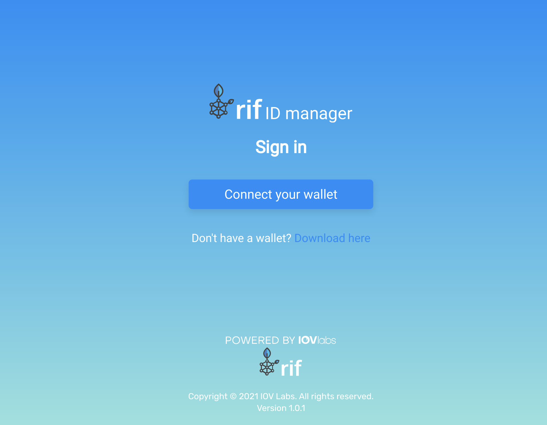Once you have signed the message and it has been verified, you will see the dashboard for the RIF Identity Manager.